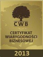 Certyfikat Wiarygodności Biznesowej 2013