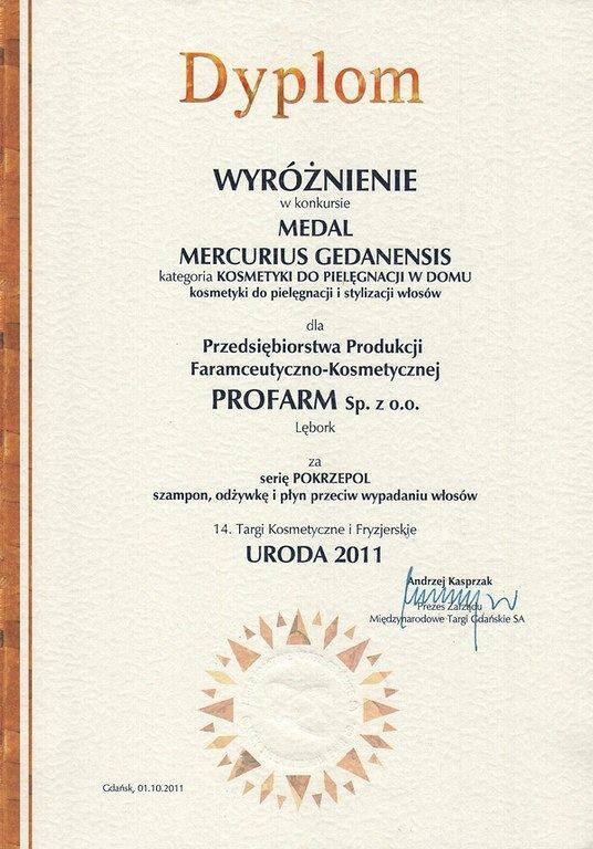1 października 2011 r. otrzymaliśmy wyróżnienie w konkursie MEDAL MERCURIUS GEDANENSIS w kategorii: Kosmetyki do pielęgnacji w domu — kosmetyki do pielęgnacji i stylizacji włosów za serię POKRZEPOL: szampon, odżywkę i płyn przeciw wypadaniu włosów na 14 Targach Kosmetycznych i Fryzjerskich URODA 2011.